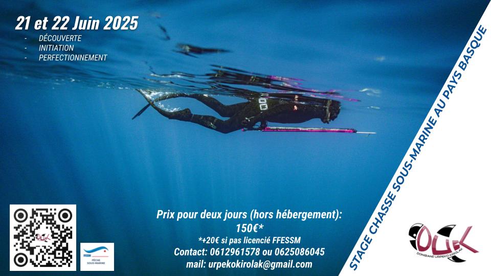 Stage initiation pêche sous-marine sur la côte basque organisé par le DUK
